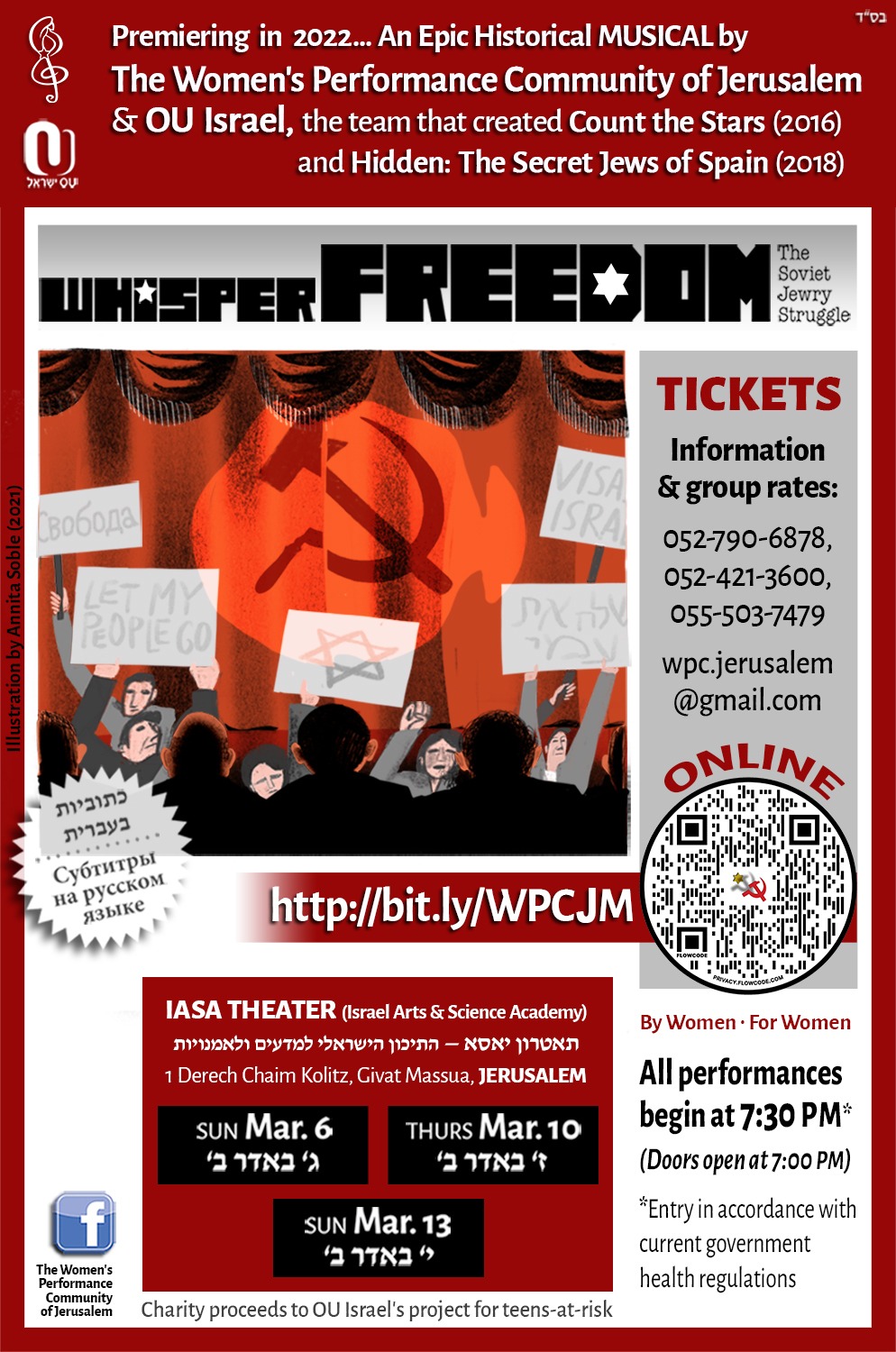 The Women’s Performance Community of Jerusalem is back on stage with a brand new and exciting historical musical, “WHISPER FREEDOM: The Soviet Jewry Struggle”.