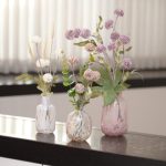 Three ceramic vases in milk white, mocha, and blush pink, each with a lifelike faux flower arrangement. A fresh and modern accent for any home.
