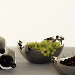 Crafted from mirror-polished stainless steel, each dish is uniquely hand-pressed and signed by the artist. A stunning gift that doubles later as a sushi or snack tray.