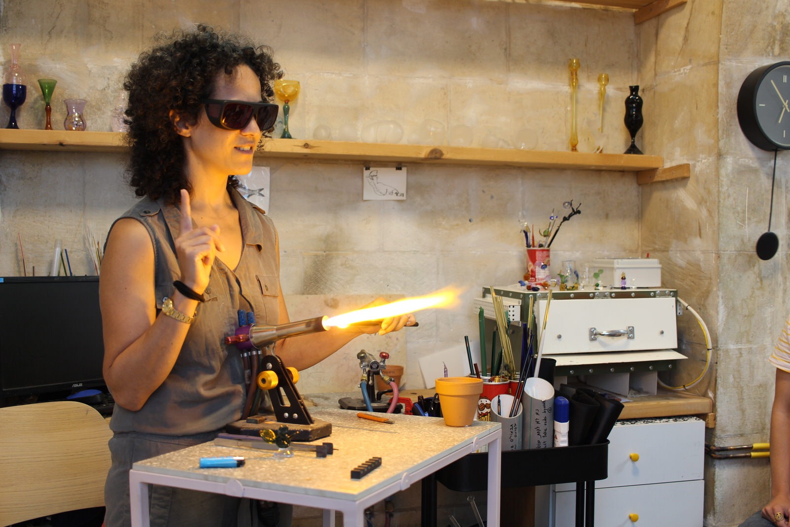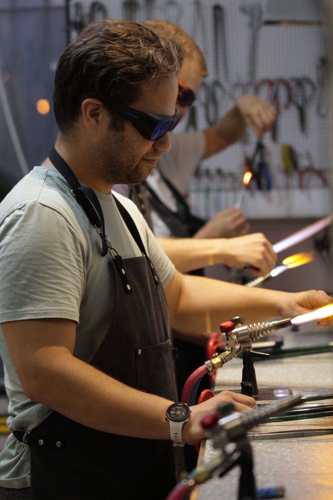 The workshop is tailored to its participants: beginners are introduced to the art of flame working, while more advanced participants can explore glass blowing techniques.