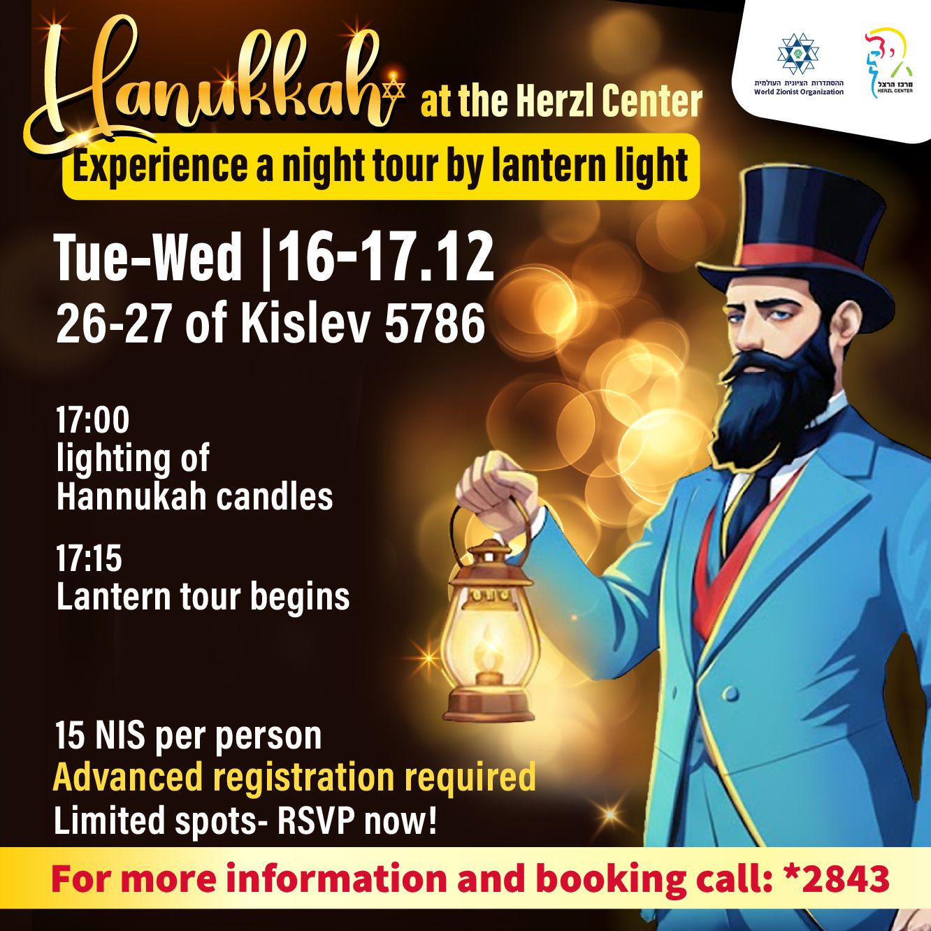 Before the lantern tours visitors can also take an additional tour of the Herzl Museum, exploring the life of Theodor Herzl at 4:30pm.