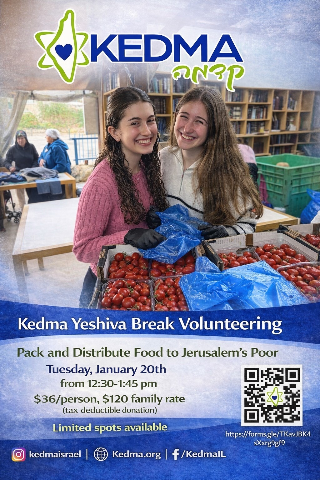 Make volunteering with Kedma a part of your Yeshiva week trip to Israel!