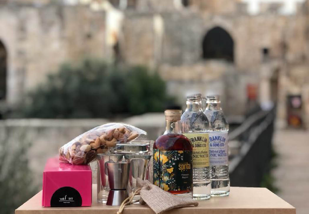 Add to the experience by ordering a special basket of surprises from Jerusalem: a pampering package of cocktails and snacks to put you in the mood for entertainment. All the products in the box were chosen carefully and come from Jerusalem businesses. It’s a wonderful opportunity to support our local businesses community.