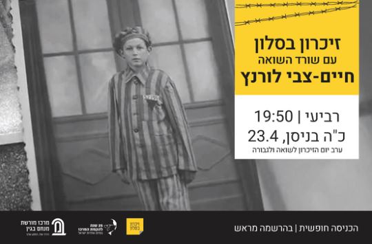 On the eve of Holocaust Remembrance Day, the Menachem Begin Heritage Center will host Holocaust survivor Chaim-Tzvi Lorentz, who will tell his fascinating life story as well as address themes such as loss, heroism, and the triumph of the spirit.
