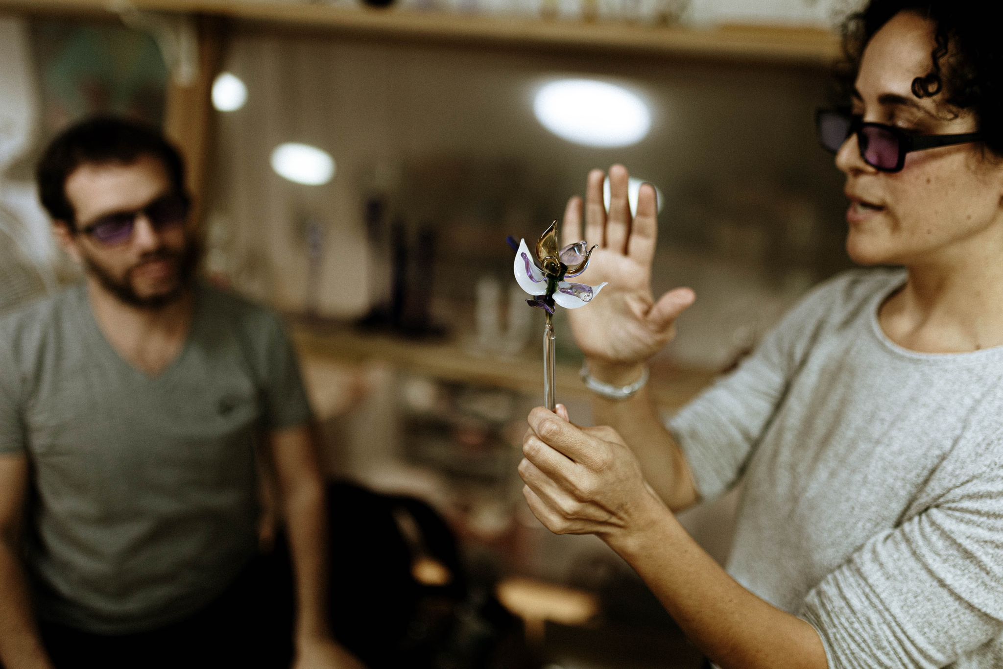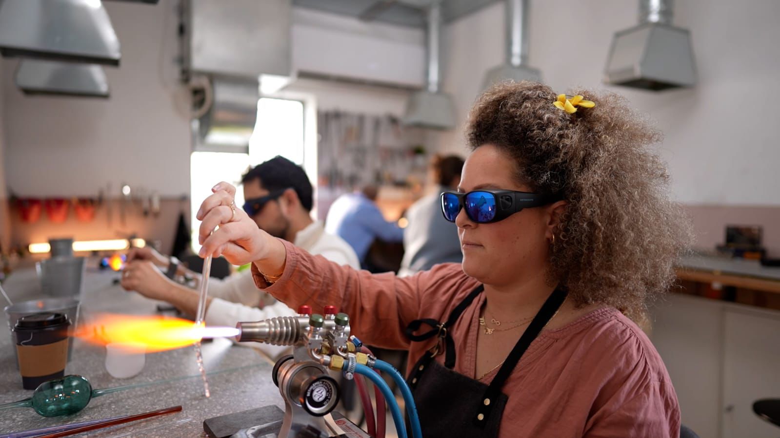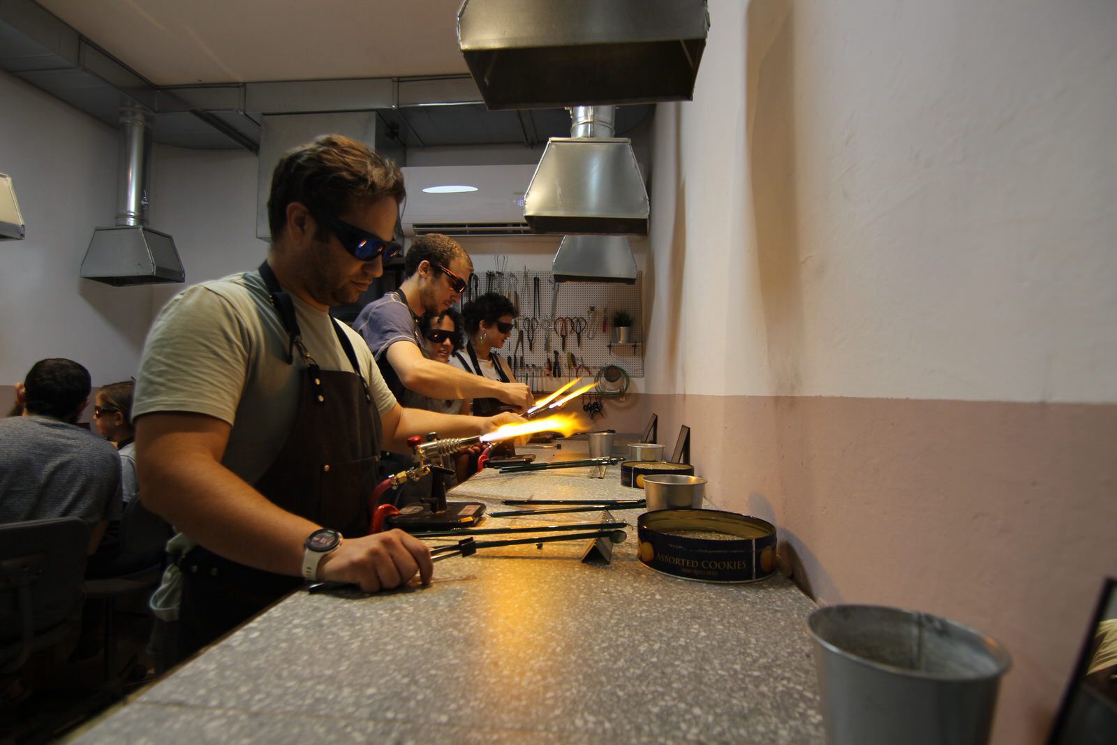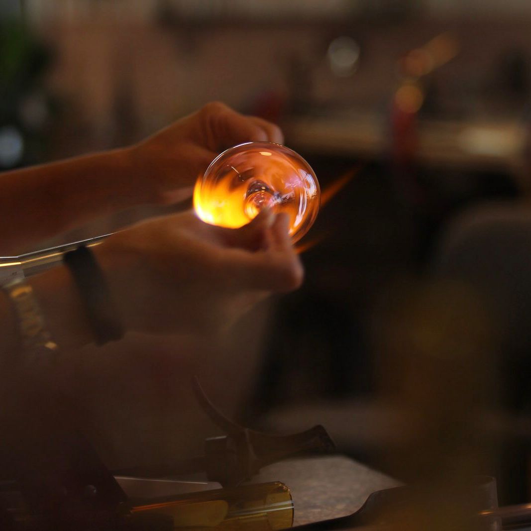 The workshop is customized for its participants. Beginners are taught the art of flame working and more advanced students can learn the technique of glass sculpting.
